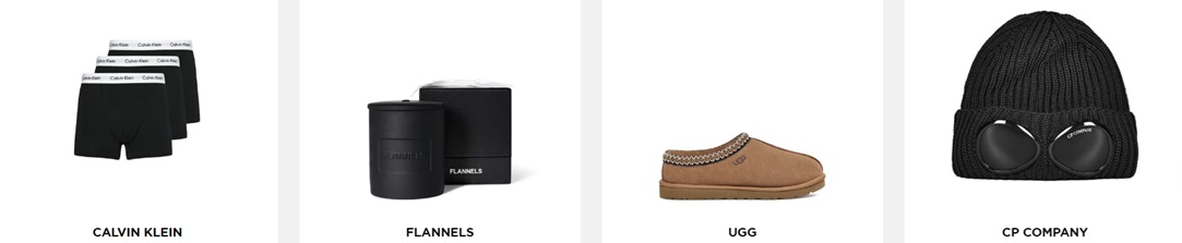 גם גברים מפונקים על ידי FLANNELS. יש להם קטגוריה ייעודית משלהם שבה הם יכולים למצוא את כל מה שהם צריכים כדי להשלים מראה טרנדי ואופנתי. מחולצות טריקו, קפוצ'ונים וסווטשירטים ועד ז'קטים ומעילים, מג'ינס וחולצות ועד חליפות וטרנינגים, מנעלי ספורט, סליידרים וכפכפים ועד נעלי ספורט, סנדלים, מגפיים ועד נעליים ואוקספורד להרבה יותר, FLANNELS סיפקה אותך עם בדים איכותיים לכל סגנונות האופנה. תן את הגימור לבגד שלך עם האביזרים והתיקים הנכונים ואל תהססו לממש את אחד מקופונים התקפים של FLANNELS כדי לקבל הנחות למותגים פופולריים כמו Stone Island, Fear of God Essentials, Kenzo, Moncler, Represent, Off-White, Dsquared2, Dolce and Gabbana, CP Company, Burberry, Canada Goose או Saint Laurent.