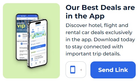הזמן תוך כדי תנועה והורד עכשיו את האפליקציה הרשמית לנייד של Priceline.com הזמינה מ-App Store ו-Google. תוכל להזמין את הטיסה הבאה שלך, מלון וכן הלאה, בכל זמן שתרצה, בכל מקום שתלך. תקבלו גם מבצעים בלעדיים בתוך האפליקציה שלא ניתן למצוא באתר הרשמי ותקבלו גישה לתכונות מדהימות שיאפשרו לכם להשוות עסקאות נסיעות ולבצע כל שינוי נוסף בהזמנה שלכם בזמן שאתם כבר מטיילים.