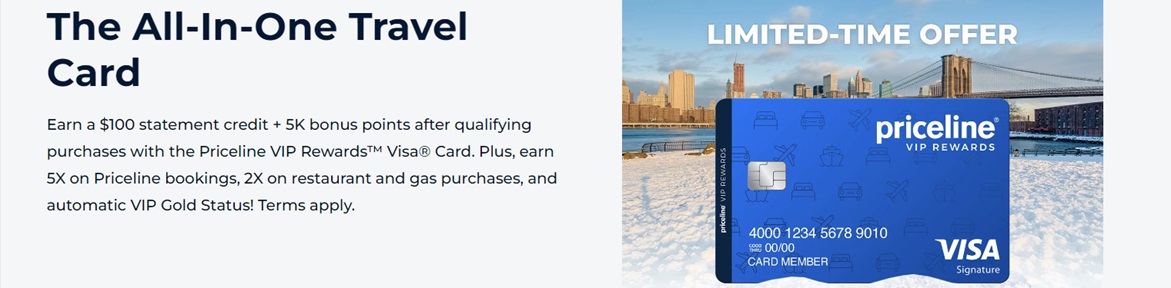 האם אתה רוצה לקבל תגמול בכל פעם שאתה מטייל? הצטרף עכשיו לתוכנית ה-VIP הרשמית של Priceline.com וסע יותר כדי לקבל עוד יותר וכדי לקבל את סטטוס ה-VIP שלך מהר יותר. הפוך לחבר VIP פלטינום אם יש לך 25 נסיעות שהושלמו ותקבל גישה למדיניות הבטחת המחיר הטוב ביותר, עד 50% הנחה על למעלה מ-45,000 מלונות, עד 20% הנחה על הנחות VIP ב-VIP, עד 50% הנחה על מלונות ו-20% הנחה על רכבים שכורים אם תוסיפו אותם לטיול קיים, קופון של 10% מבצע אקספרס לאחר כל נסיעה וכן שירות לקוחות פרימיום ראשון. לחלופין, הגש עכשיו את כרטיס ויזה של Priceline VIP Rewards כדי לקבל זיכוי של $150 בהצהרה ו-5000 נקודות לאחר הוצאת $1000 ב-90 הימים הראשונים מרגע פתיחת חשבונך. עם תוכנית זו, תקבל פי 5 נקודות על כל דולר שהוצא על הזמנות Priceline.com, פי 2 נקודות על רכישות דלק ומסעדות וכן פי 1 נקודות על כל שאר הרכישות.